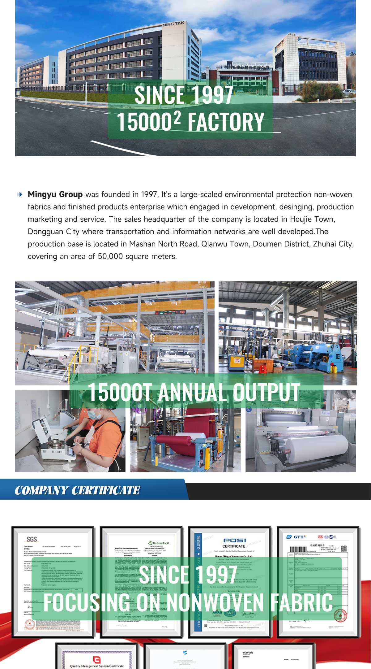 Factory: We have our own non-woven fabric production industrial park and five warehouses overseas.